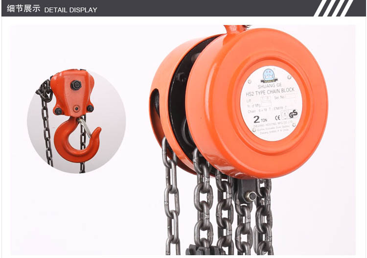 1.體積小,質量輕,便于攜帶。2.傳動效率高,手鏈拉力小。3.兩鉤間距離小,適用于狹小工作場所。4.安全系數4:1,使用安全可靠。5.結構簡潔,維護方便。